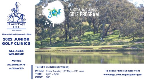 Our next junior clinics will recommence for term 2 on Tuesday 17th of May 2022. For any keen junior golfers further information and registration is available from the My Golf website