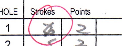 It is far too common to see errors on score cards where, for example, the player recorded 6 for 3 on a par 5 where he gets 2 strokes, but the marker wrote down 5 for 3 as they are used to getting only 1 stroke. In this case the player would be disqualified as they signed a card with a lower strokes taken score. If the error is not detected the player gets 4 points and unfairly beats someone else.