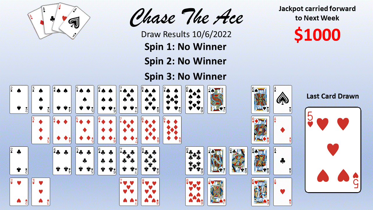 Member Draw and Chase The Ace Results - click to enlarge: